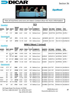 *Not all machines and sizes are listed. Contact Dicar for more information.